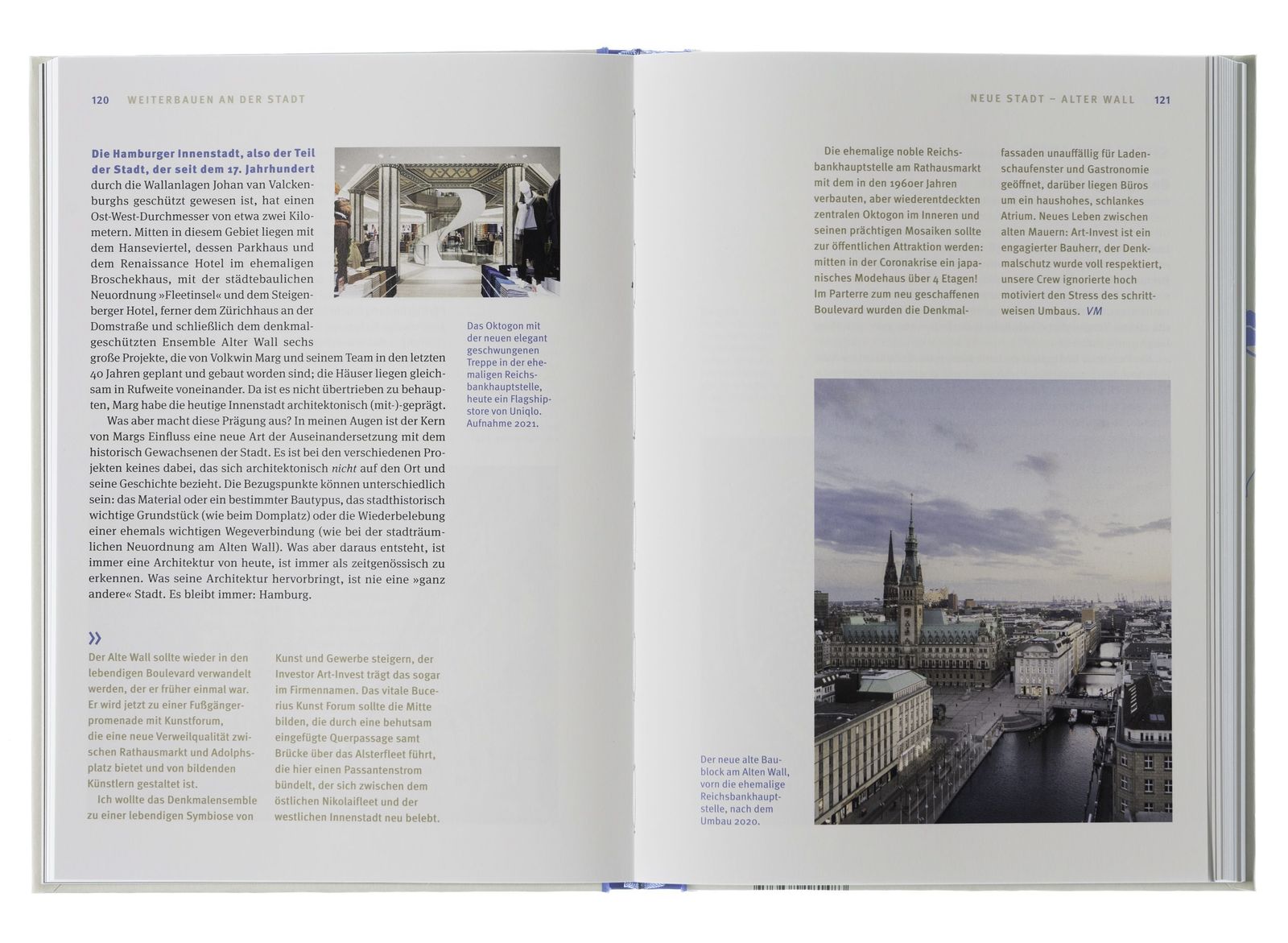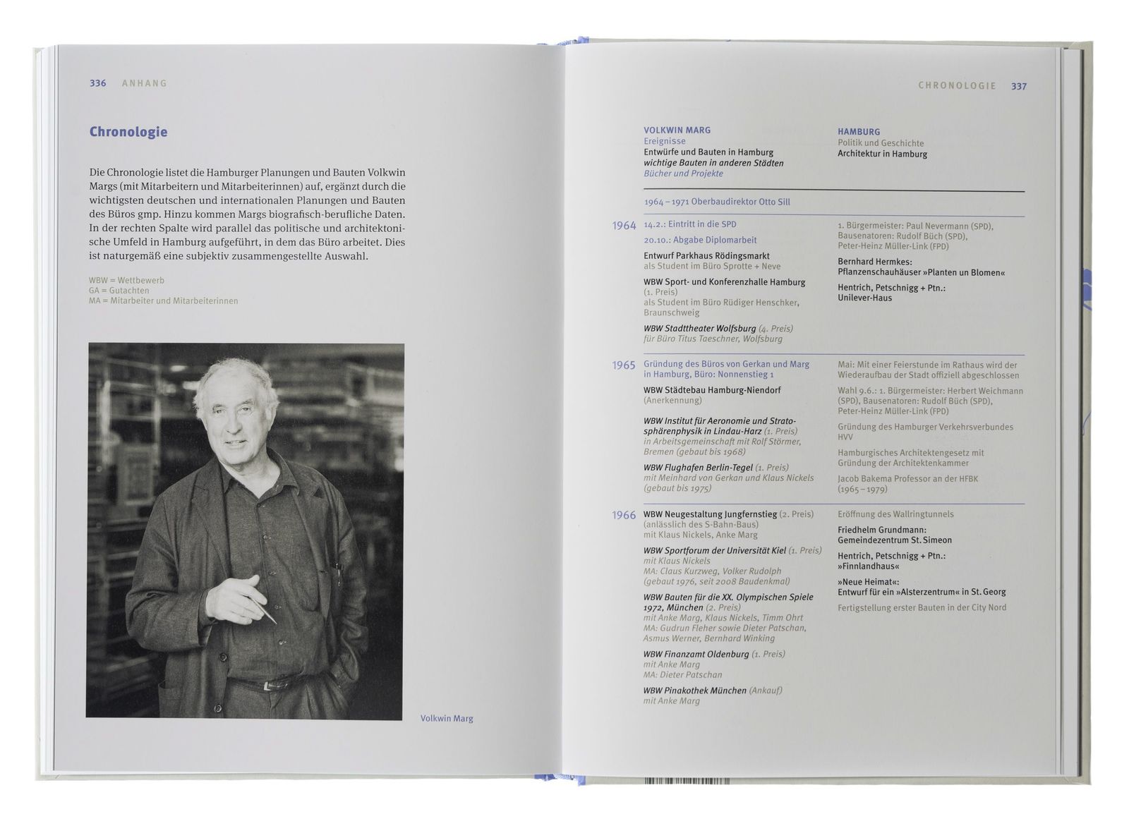 Volkwin Margs frühe Prägung durch Danzig, die Stadt seiner Kindheit, die Erinnerungen an Wasser, Hafen, den Geruch von Schiffen und das Tuten der Dampfer haben ihn in Hamburg eine zweite Heimat finden lassen. Aus dieser Prägung heraus sind seine Initiativen für einen Museumshafen für alte Arbeitsschiffe oder gegen die Industrialisierung der Unterelbe, sein Kampf um das "Kunstwerk Hamburg" und für neues Leben in alten Bauten zu verstehen – von der Fischauktionshalle und der Fabrik bis zum Kesselhaus in der Speicherstadt. Mit rund fünfzig Bauten in fast sechzig Jahren Tätigkeit hat er die Stadt Hamburg architektonisch geprägt, durch Projekte wie das Hanse-Viertel, das Zürich-Haus, den Umbau des Alten Wall, vor allem aber durch erste städtebauliche Überlegungen zur HafenCity. Das Buch erlaubt einen Blick hinter die Kulissen der Arbeit eines engagierten Stadtplaners und Architekten in kontinuierlicher Auseinandersetzung mit Politik und Gesellschaft.