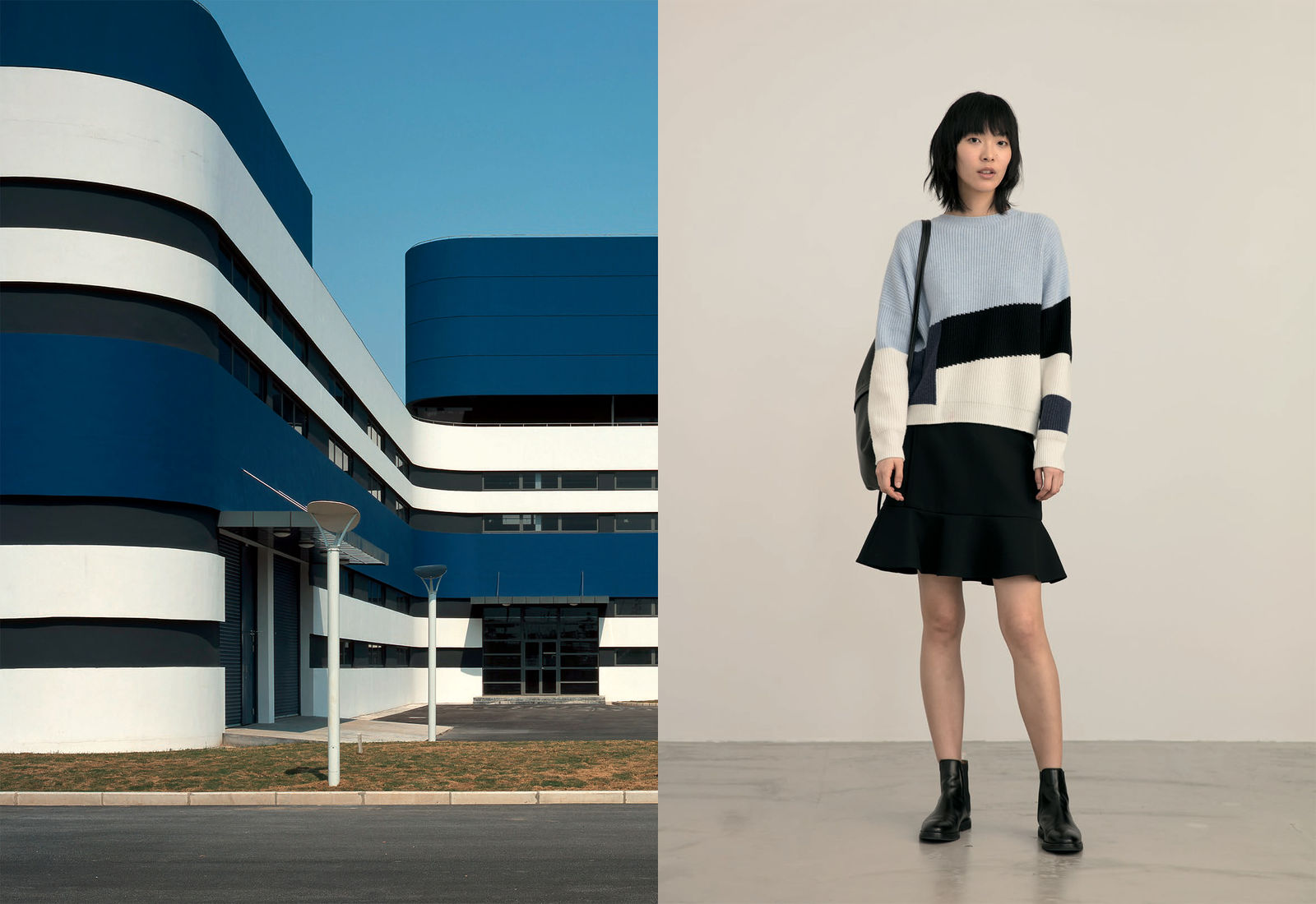 The conceptual similarities between gmp and ICICLE were first displayed in a jointly curated exhibition titled “Architecture x Fashion – A Dialogue” in Shanghai (2018) and Hamburg (2019). gmp’s commercial buildings in China inspired ICICLE’s fashion designers to create an entire collection. Using the medium of photography, architecture and fashion were juxtaposed and compared in the exhibition, revealing similarities in concept, structure, and form at different scales.