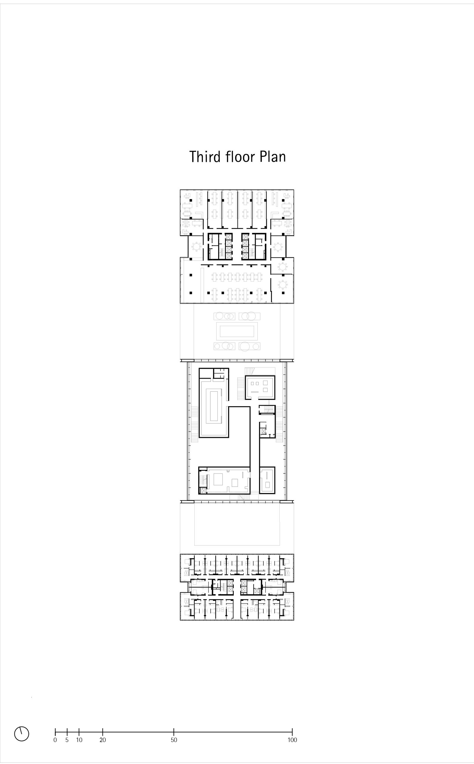 The design concept divides the overall volume specified by the master-plan into three parts: a slender office tower to the north that houses the CHJ Group headquarters; the compact museum that continues the cultural axis and forms the cultural heart of the ensemble; and a residential tower to the south completing the composition. Inside the museum, a sequence of self-contained “exhibition boxes,” conceived as structures within the structure, ensures optimal lighting and climate conditions for the delicate artifacts. Bridges and open stairways guide visitors through the exhibition circuit and offer varied perspectives on the collection. Ground-floor passageways and the public foyer integrate the museum seamlessly with the city and its cultural axis.