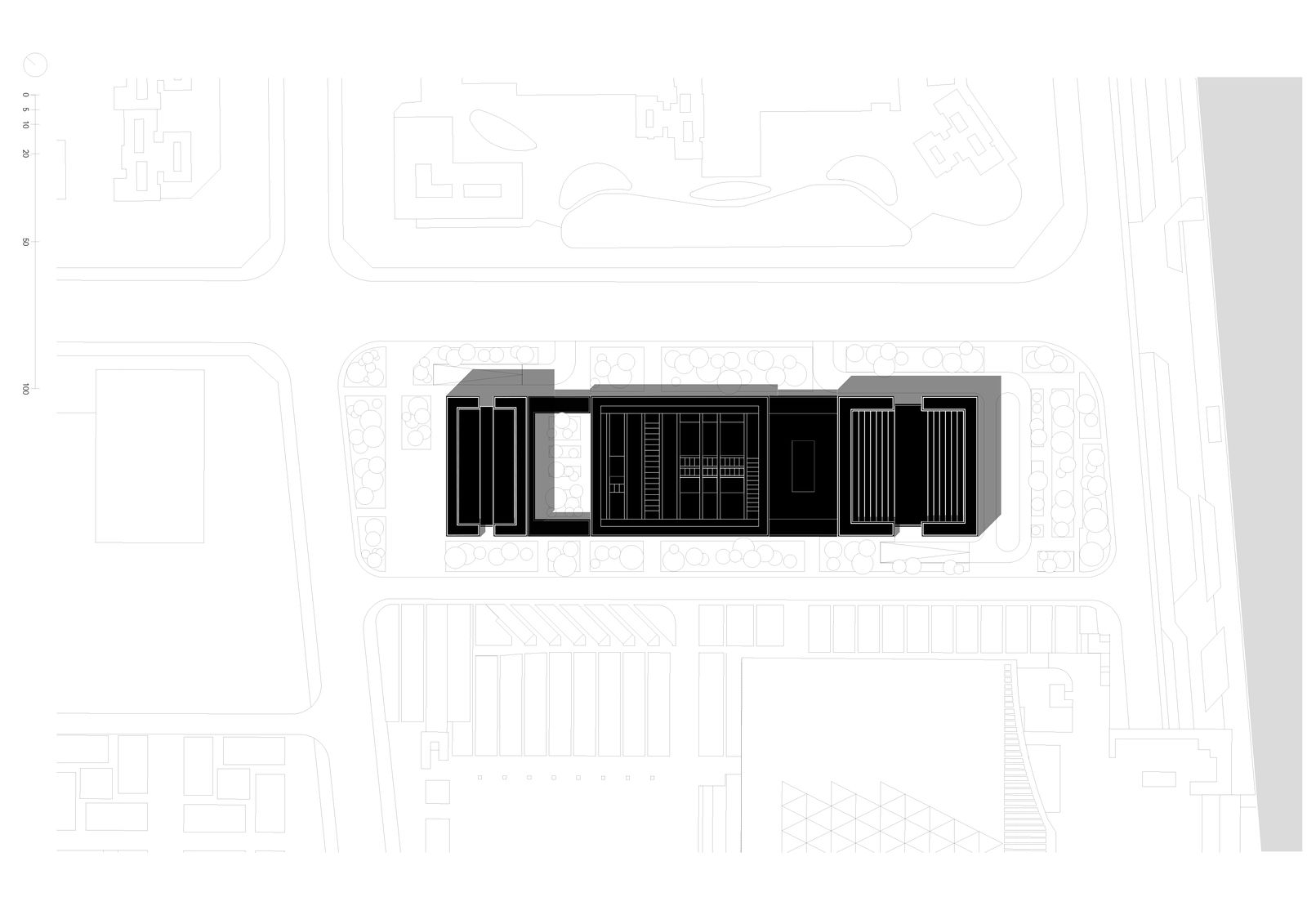 Within this context, CHJ Plaza plays a pivotal role. Together with the adjacent Chaoshan Exhibition Center to the east — showcasing key elements of the region’s material and immaterial cultural heritage — it forms the neighborhood’s new cultural center. The museum creates a public venue that opens the client’s collection of historic Chinese jewelry and gold-thread artifacts to a wider audience. At the same time, the overall complex brings together work, culture, and living in a clearly organized architectural composition.