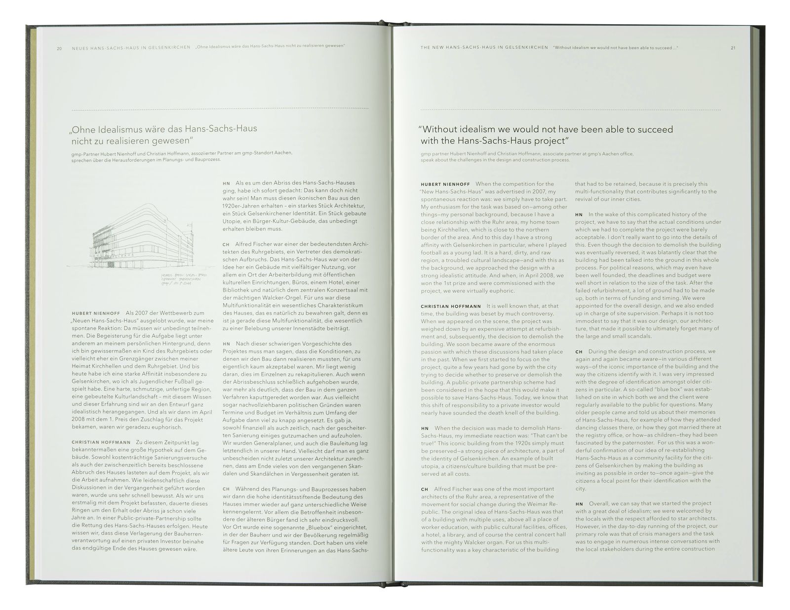 In this volume of the gmp FOCUS series, the architects present their approach and show the particularities of this task by means of plans and images. The architecture journalist Dirk Meyhöfer illuminates the significance of this building in a detailed essay, as well as the conversion in the context of the historical development of the Ruhr area.