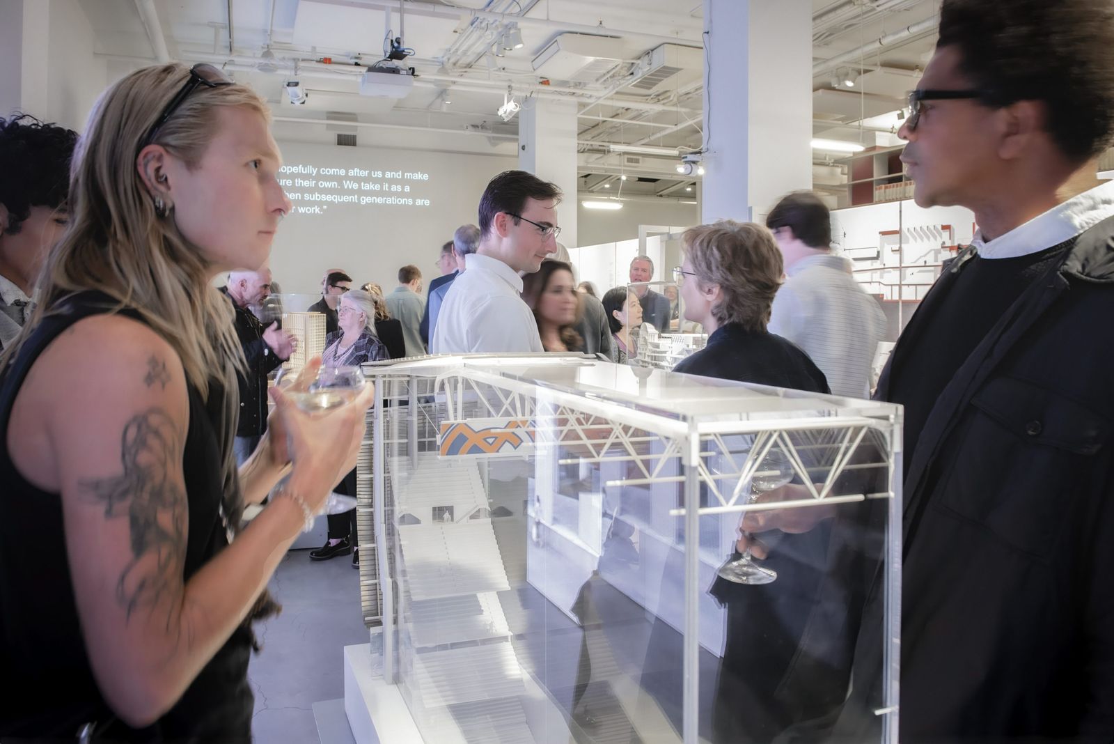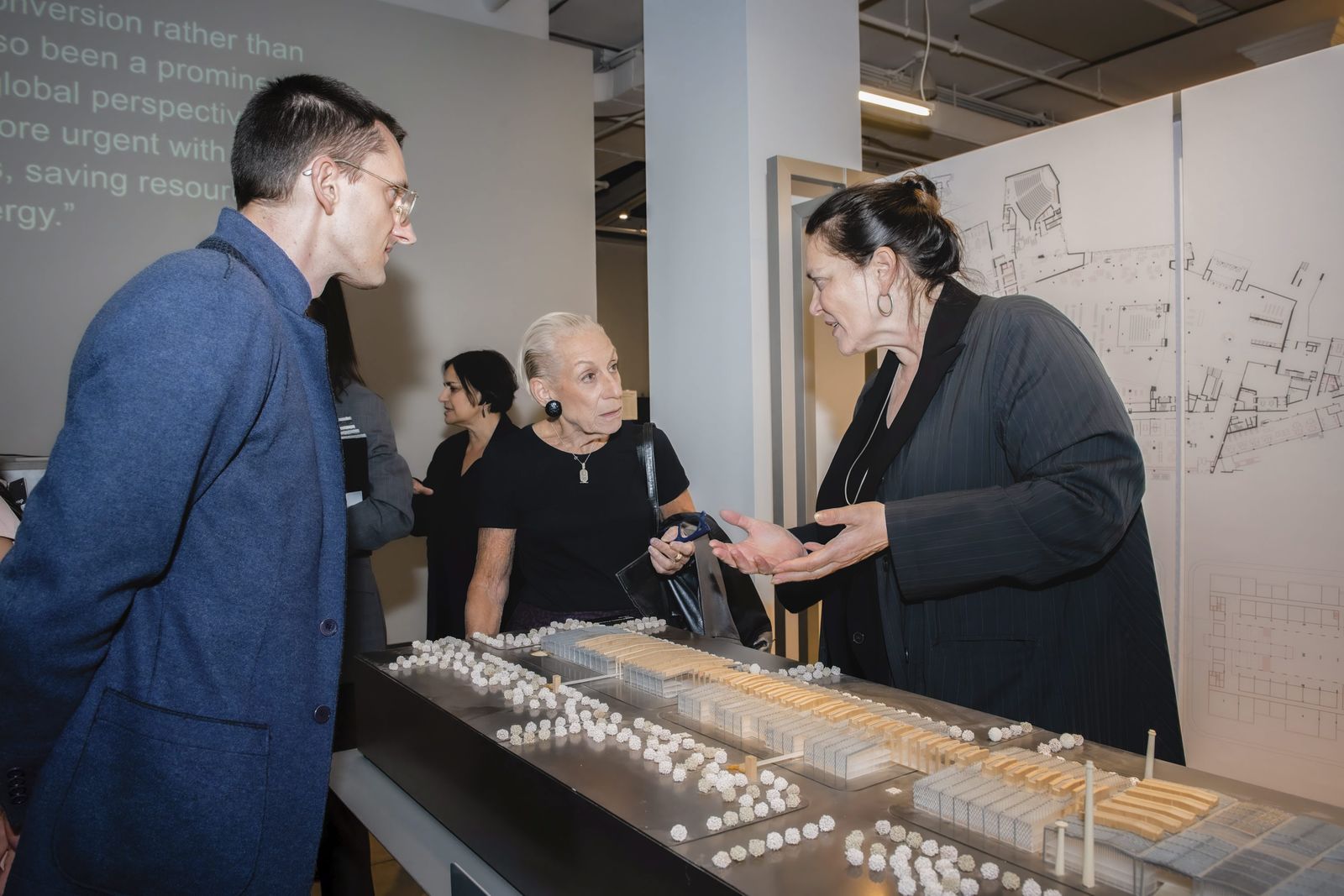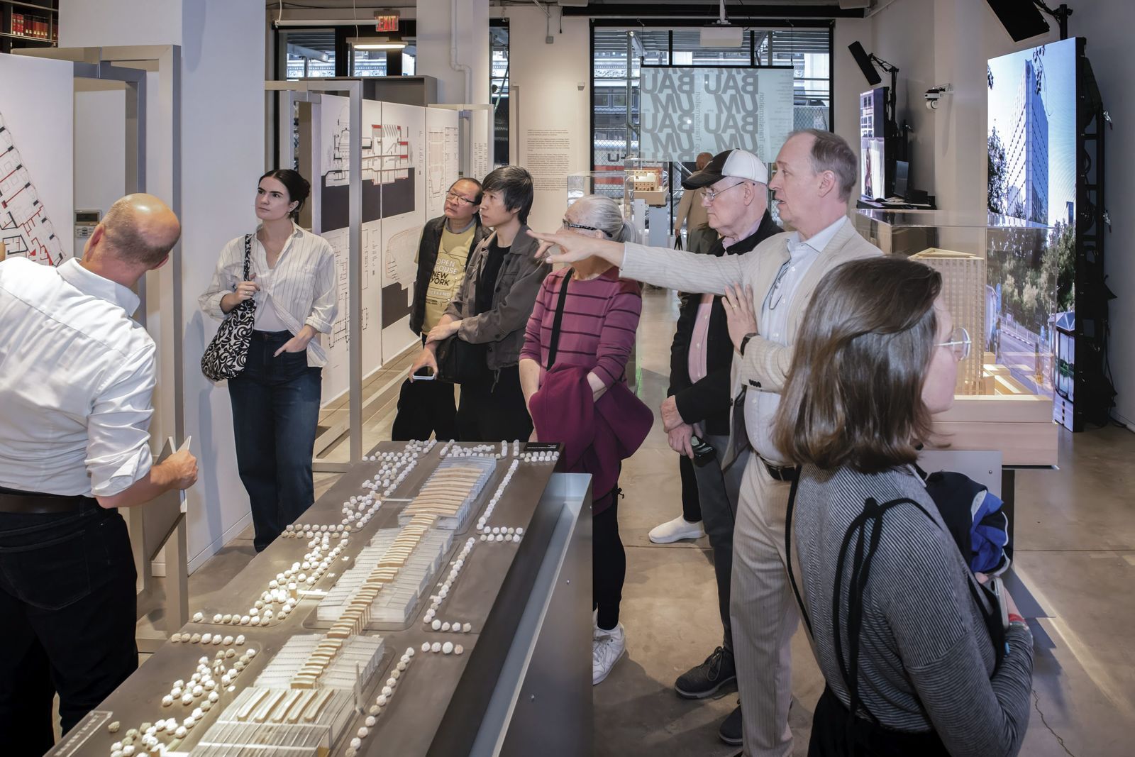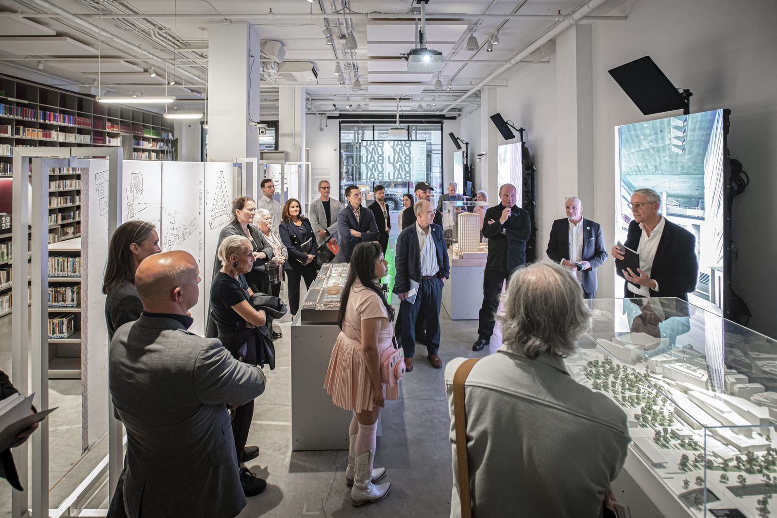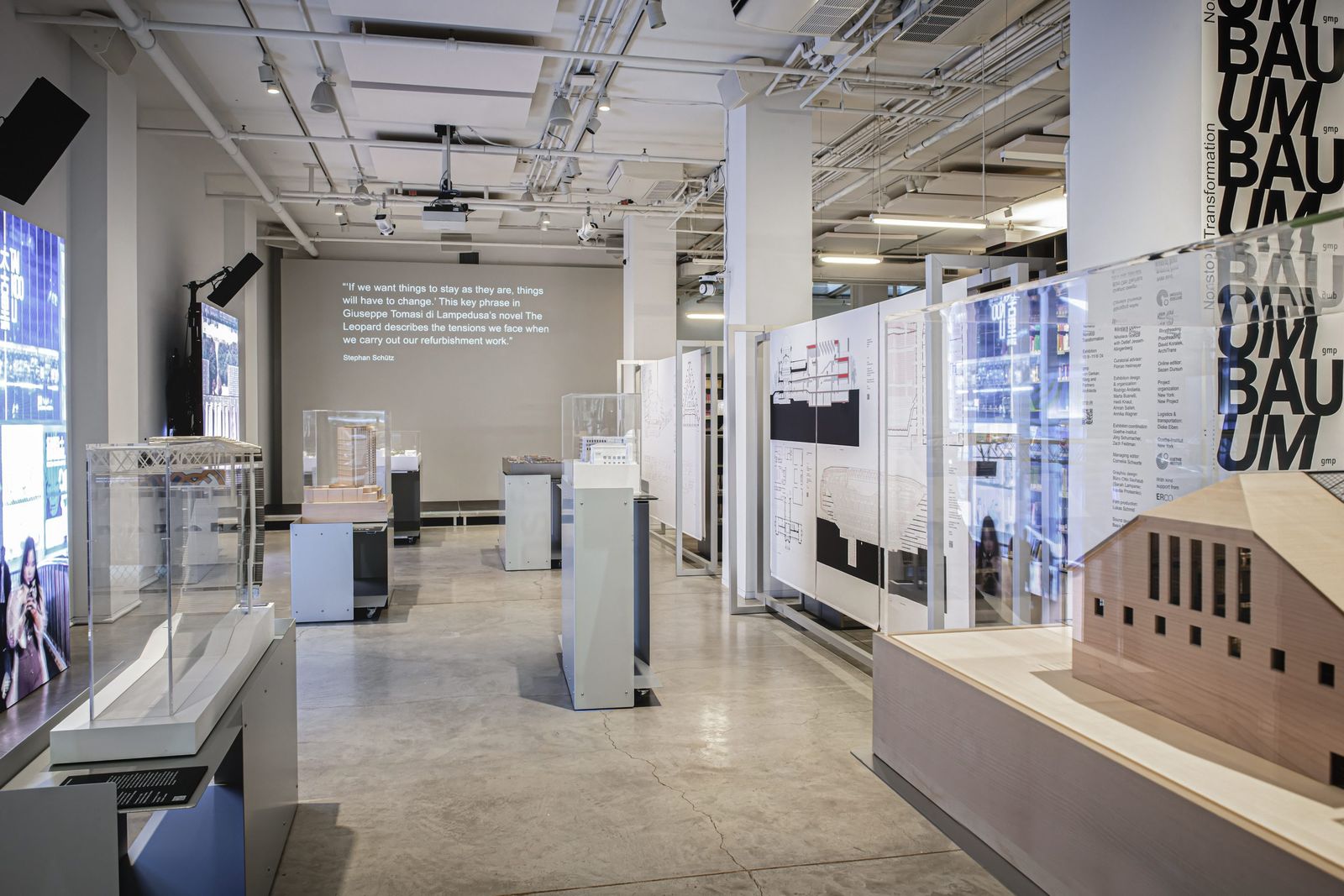 In New York, six projects of different typologies were presented, representing a cross-section of the current global challenges in conversion. The transformation of skyscrapers was a focus, as was the conversion of cultural and sports buildings in Europe and Asia. On display were the at that time recently completed Estadio Santiago Bernabéu in Madrid, the Isarphilharmonie Gasteig HP8 in Munich, which integrates a former transformer hall, the extension of the Kunsthalle Mannheim, and the renovation of the Chao Hotel in Beijing. Also featured were the conversion of Shanghai's largest stainless steel factory into the Shanghai Academy of Fine Arts and the design for the conversion of Hans Scharoun's State Library at the Kulturforum in Berlin.
