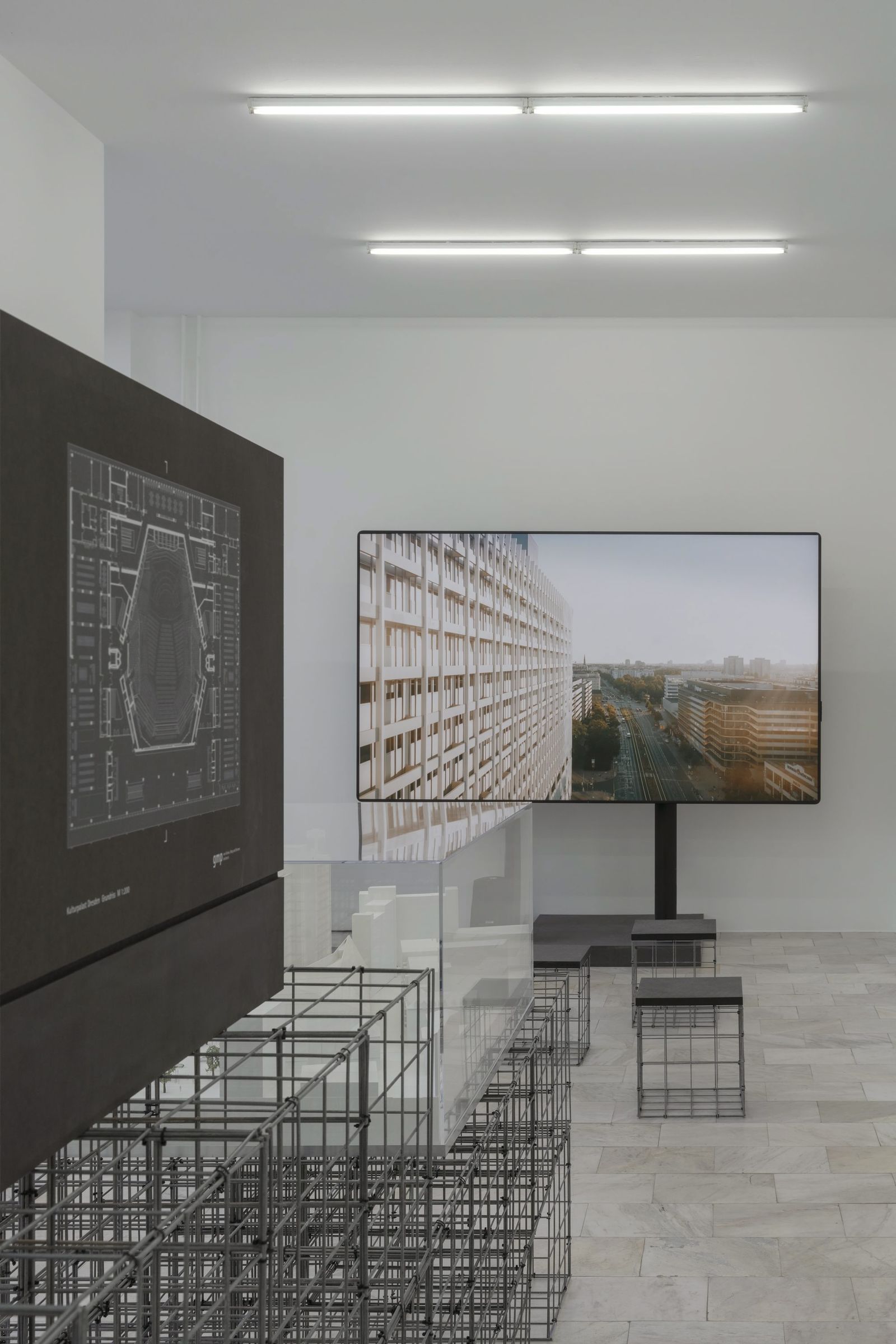 At Architektur Galerie Berlin, a prime example of Socialist Classicism located in Karl-Marx-Allee, three completed projects were presented as case studies for the preservation of East German modernist buildings: the Hyparschale Magdeburg (1969/2024), the Kulturpalast Dresden (1969/2017), and the Pressehaus at Alexanderplatz (1973/2023).