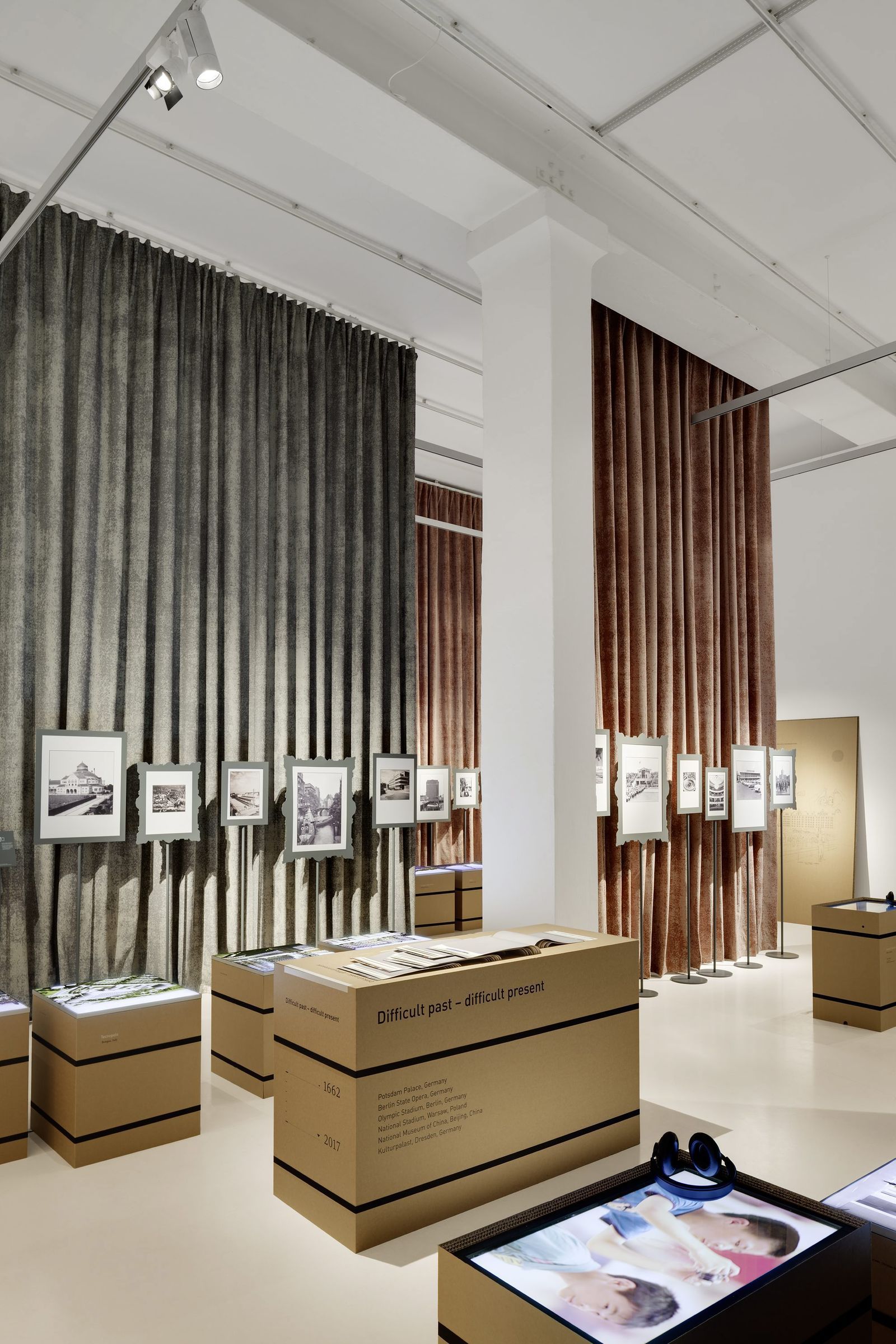 In four further exhibition sections, each with a different emphasis, examples of the architects’ extensive repertoire, which has grown over fifty years, are presented. Examples are the boiler house at Hamburg’s Speicherstadt, the Polish National Stadium in Warsaw, the Chinese National Museum in Beijing, the Culture Palace in Dresden, Kunsthalle Mannheim, the Hamburg-Harburg Technical University, the Kirov Stadium in Saint Petersburg and many more.